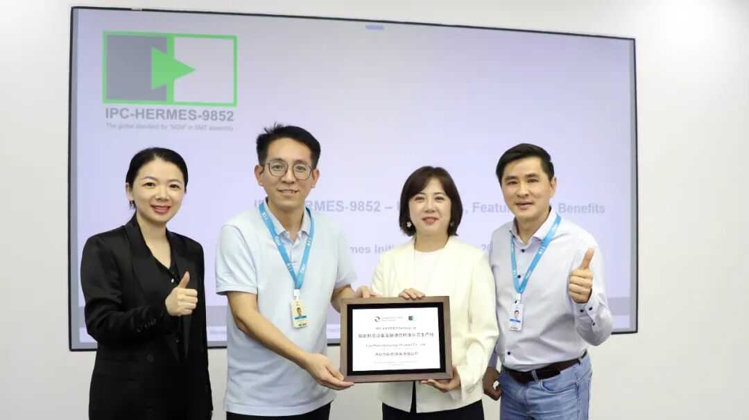 10月28日,全球电子协会东亚区总裁肖茜女士率团队参访伟创力珠海B11工厂,并授予其“IPC HERMES Demo Line 智能制造设备互联通信标准示范生产线”荣誉牌匾。